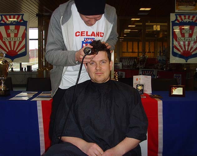 Hárskerinn Símon B. Hjaltalín er dyggur stuðningsmaður Snæfells og því í sjöunda himni þessa dagana eftir glæsta leiktíð Íslands- og bikarmeistaranna. Dag einn við störf sín á hársnyrtistofunni í Hólminum lét hann þau orð falla að ef sitt lið myndi vinna þann stóra skyldi hárið fjúka. Þar sem Keflavík var andstæðingurinn og Snæfell ekki riðið feitum hesti frá úrslitarimmum gegn Keflavík gat Símon, nokkuð kokhraustur, látið þessi stóru orð falla sem þau vissulega voru enda Símon með hárprúðari mönnum landsins.