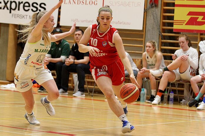 Mynd/ Dýrfinna Arnardóttir sækir að körfu Njarðvíkinga í kvöld.