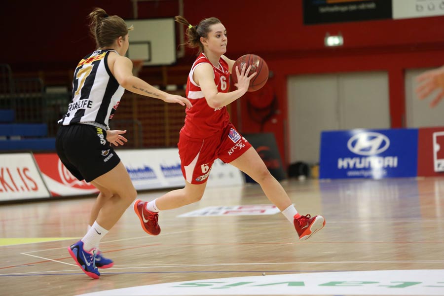 Lele Hardy átti stórleik að venju en hún var með 25 stig, 21 frákast og 7 stoðsendingar í leiknum. Næstar komu María Lind Sigurðardóttir með 10 stig og Auður Íris Ólafsdóttir sem var með 5 stig, 11 fráköst og 6 stoðsendingar. Hjá KR var Simone Jaqueline Holmes efst á blaði með 15 stig og 4 fráköst og næst henni voru Bergþóra Holton Tómasdóttir með 11 stig og 6 fráköst og síðan Björg Guðrún Einarsdóttir með 6 stig, 7 stoðsendingar og 5 fráköst.