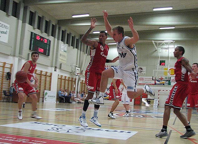Svavar Páll Pállson, Hamar, brýtur sér leið í gegnum vörn Haukanna og fer upp í sniðskotið og skorar en á einhvern óskiljanlegan hátt er dæmdur á hann ruðningur, í staðin fyrir körfu góða og vítaskot sem réttilega hefði átt að dæma (þó svo að undirritaður sé kannski ekki alveg hlutlaus).