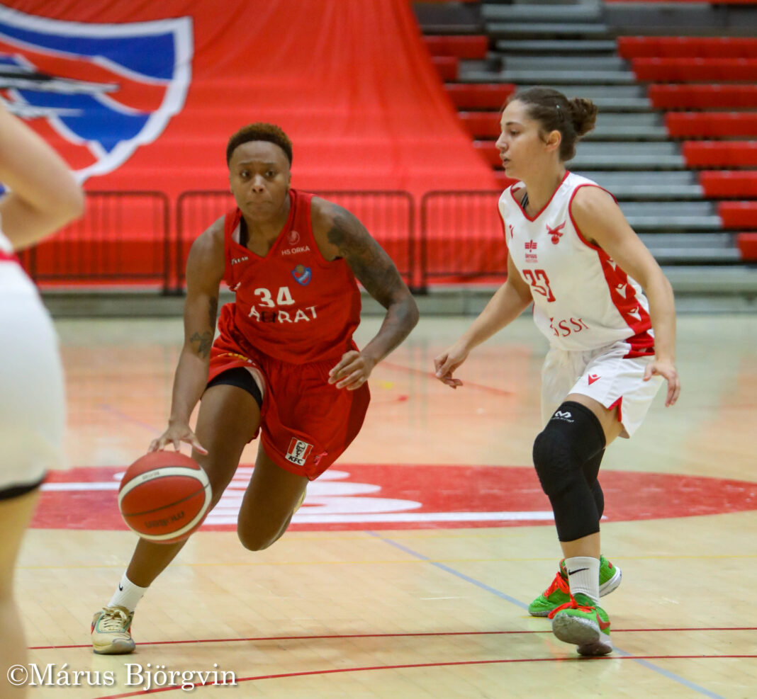 Keira Robinson var stigahæst Hauka með 18 stig, en það var Rósa Björk Pétursdóttir sem kom skemmtilega á óvart með 14 stig sjálf.