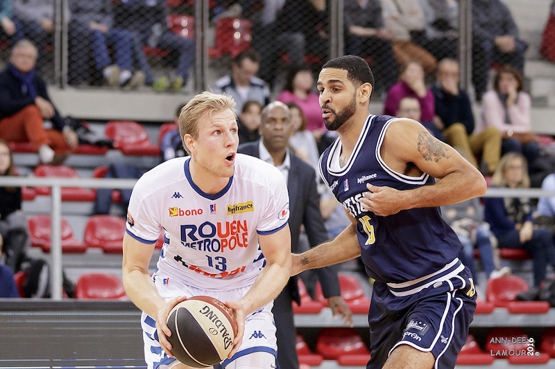 Haukur Helgi var með 11 stig, 5 stoðsendingar og 3 fráköst í leiknum. Auk þess fiskaði hann fimmtu villuna á Martin sjálfan og setti körfu í andlitið á honum í upphafi endurkomu Rouen í leiknum.