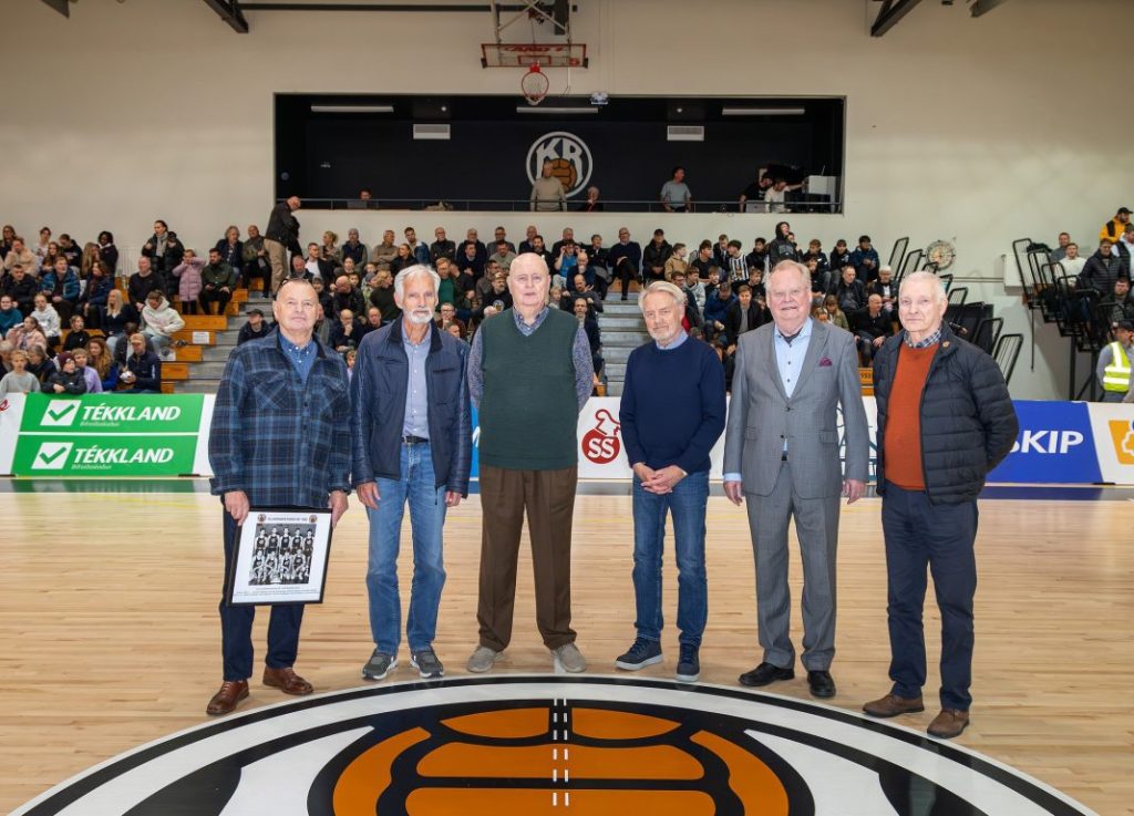 Heiðursgestir á leik KR og ÍA á fimmtudag í Bónus deild karla voru Íslandsmeistarar KR karla frá árinu 1965, en í ár eru einmitt liðin 60 ár frá þessum fyrsta Íslandsmeistaratitli KR í efstu deild í körfubolta.