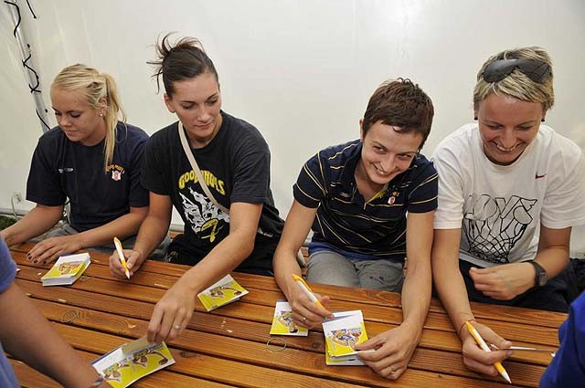 Mynd/ Á götuboltamótinu gáfu leikmenn Good Angels aðdáendum sínum eiginhandaráritanir.