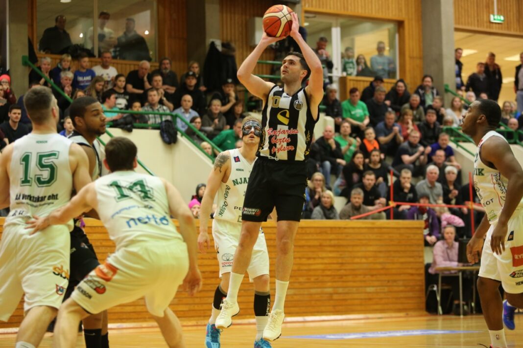 Helgi Már Magnússon var svo sannarlega betri en engin í kvöld þegar hann smellti niður þremur fljótum þristum fyrir KR í fjórða fjórðung leiksins gegn Njarðvík. Þau stig komu á hárréttum tíma fyrir KR-inga og í raun hélt þeim á floti þegar Njarðvíkingar þjörmuðu sem harðast að þeim.  Fram að því sagðist Helgi hafa verið ömurlegur á báðum endum vallarins og skuldað félögum sínum þessi stig.