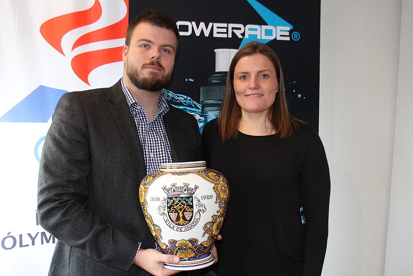 Mynd/ [email protected] – Hildur og Gunnar með bikarskálina góðu í dag.