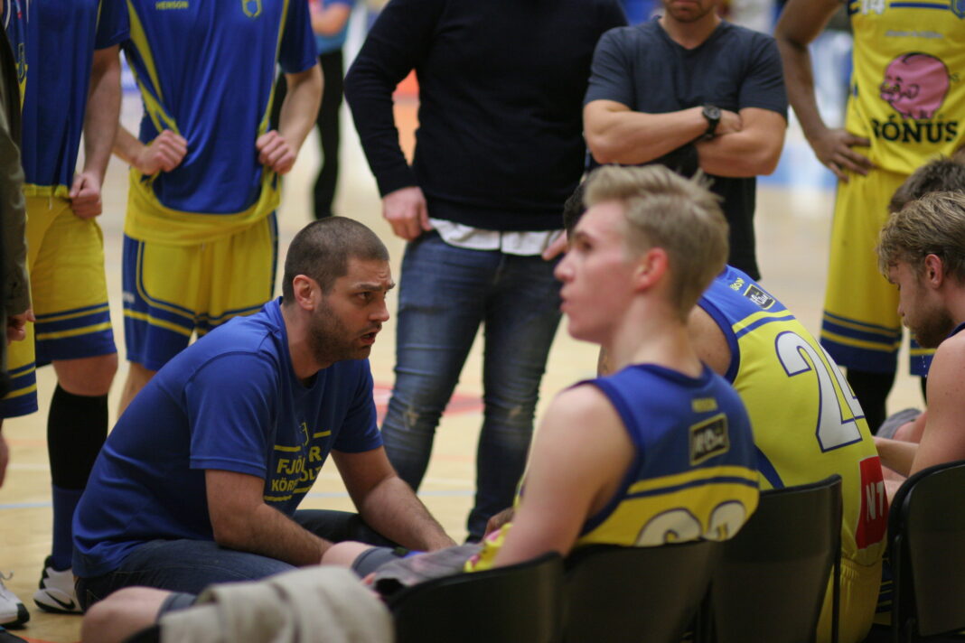 Hjalti Þór Vilhjálmsson þjálfari Fjölnis var í viðtali við Sportþáttinn í gærkvöldi strax eftir sigurinn á Hamri í 1. deild karla. Hann sagðist gríðarlega glaður með sigurinn sem kom liðinu langt með að tryggja sér annað sæti deildarinnar. Hjatli sagði sína menn hafa glutrað tækifærinu á að komast upp í fyrra en nú ætti að gera aðra tilraun og allt yrði lagt í verkefnið þegar úrslitakeppnin hefst.