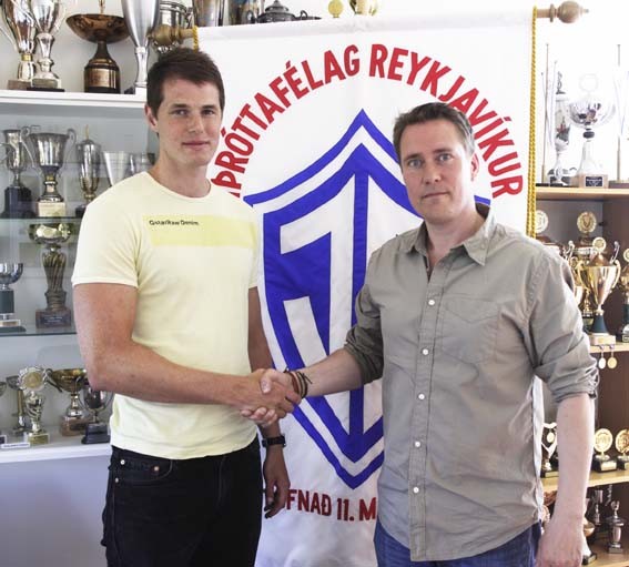 Ljósmynd/ www.ir.is – Hjalti og Gunnar við samningagerðina. Hjalti verður í Hellinum á næsta tímabili.