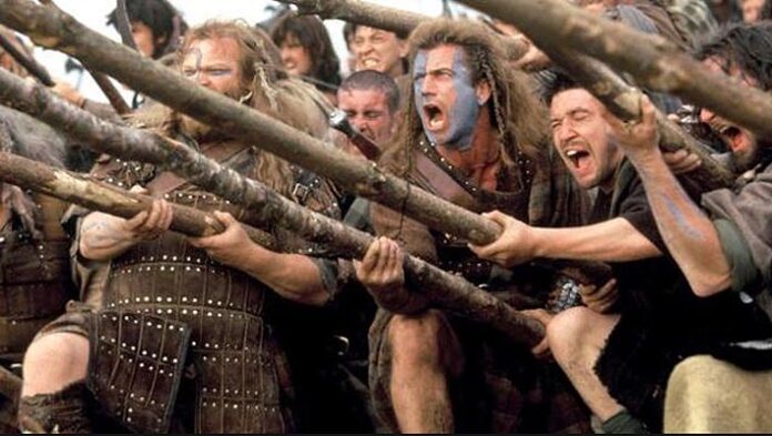 Mynd/ Stórleikarinn Mel Gibson gerði Skotann William Wallace ódauðlegan á hvíta tjaldinu í myndinni Braveheart en úr þeirri ræmu hafa ófá stemmningsmómentin verið notuð til að keyra upp kappið í mönnum.