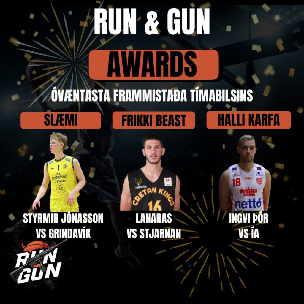 Run and Gun fóru í ærlegt fyrri umferðar uppgjör á liðum fyrstu deildar karla. Farið er í verðlaunaafhendingar, þar sem gestir þáttarins og stjórnandi útnefna bestu leikmenn, bestu sjöttu menn og margt fleira. Hér fyrir neðan má sjá hvað Run and Gun fannst koma mest á óvart í fyrstu 11 umferðunum ásamt því sem kannski kom minnst á óvart.