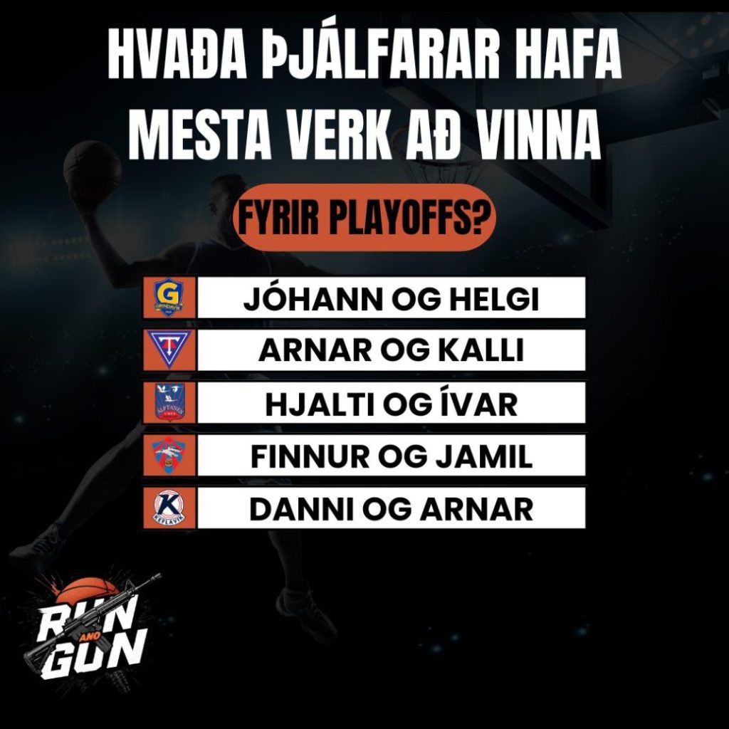 Meðal þess sem Run and Gun fer yfir er VÍS bikarvikan, landslagið í Bónus deild karla og margt fleira. Þá er farið sérstaklega yfir hvaða þjálfarar hafi mest verk að vinna fram að úrslitakeppni ef vel á að fara. Í efsta sæti þess lista eru Jóhann Þór og Helgi hjá Grindavík. Í öðru Arnar og Kalli hjá Tindastóli og því þriðja Hjalti og Ívar hjá Álftanesi.