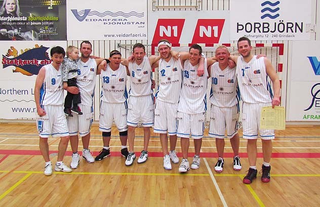 Mynd/ Liðsmenn ÍG voru að vonum sáttir með sigur á grönnum sínum úr Sandgerði.