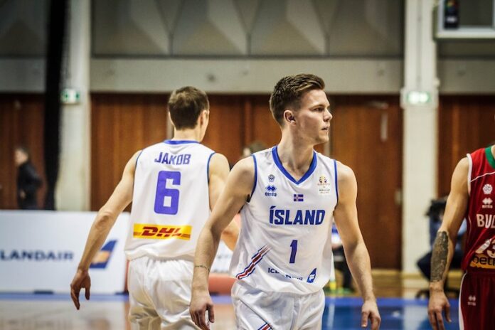 Ísland leiðir með átta stigum í hálfleik og hefur liðið leikið frábærlega á köflum. Jakob Örn Sigurðarson er stigahæstur í liðinu með 13 stig og Martin Hermansson með 12 stig. Þá mætti Tryggvi Snær Hlinason heldur betur til leiks en hann var með 3 varin skot strax á upphafsmínútunum og gerði mikið fyrir liðið.
