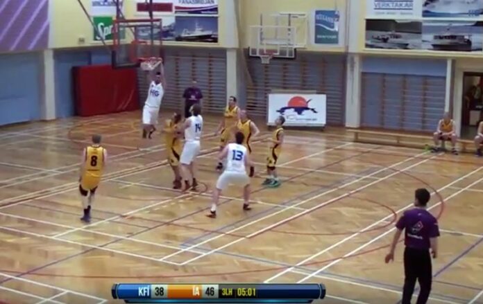 Jakinn TV lætur aldrei deigan síga og á því varð engin undantekning síðastliðinn föstudag þegar KFÍ og ÍA mættust í 1. deild karla. ÍA hafði 69-77 útisigur en Nebojsa Knezevic gerði 20 stig og tók 11 fráköst í liði KFÍ og tvö stiga hans komu þegar hann skaust inn með endalínunni og tróð með tilþrifum.