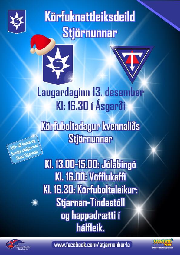 Laugardaginn 13.desember þá er körfuboltadagur kvennaliðs Stjörnunnar. Dagurinn byrjar kl.13 á jólabingói með glæsilegum vinningum, spjaldið kostar 500kr. Eftir bingóið verður síðan vöfflukaffi og dagurinn endar á því að stelpurnar taka á móti Tindastól í deildinni.