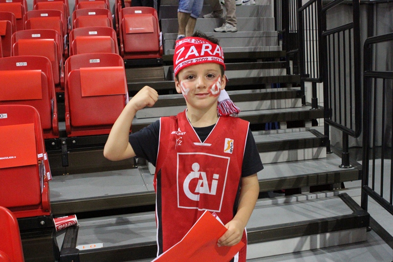 Eftir síðasta leik CAI Zaragoza í gærkvöldi þá er það víst venja hjá leikmönnum að fara með æfingartreyjur og annað sem þeir hafa fengið yfir leiktíðina og gefa stuðningsmönnum. Jón var með ruslapoka fullan af “góssi” fyrir stuðningsmenn sína og hóf leik á því að henda einum bol uppí loftið. Eftir það þá varð uppi fótur og fit og Jón réð ekkert við neitt þar sem stuðningsmenn réðust á pokann og tæmdu hann á mettíma.  Eins og sjá má á myndbandinu þurfti öryggisvörður að skerast í leikinn svo mikil voru lætinn. Myndbandið segir allt sem segja þarf í þessu efni. En eftir þetta þá vildu allir fá annað hvort eiginhandaráritun eða þá mynd af sér með sínum vinsælasta manni. Myndin sýnir einn af hörðustu stuðningsmönnum Jóns í stúkunni í leiknum.
