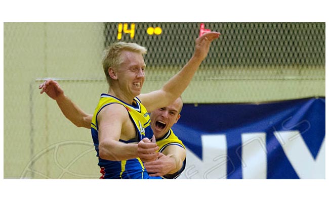 Mynd/ [email protected] – Fjölnismenn fögnuðu innilega magnaðri sigurkörfu Jóns eftir frábæra sendingu Arnþórs Freys