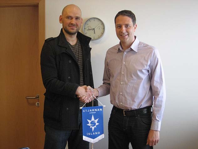 Mynd: Jovan ásamt Gunnari Kr. Sigurðssyni formanni Körfuknattleiksdeildar Stjörnunnar við undirritun samingsins.