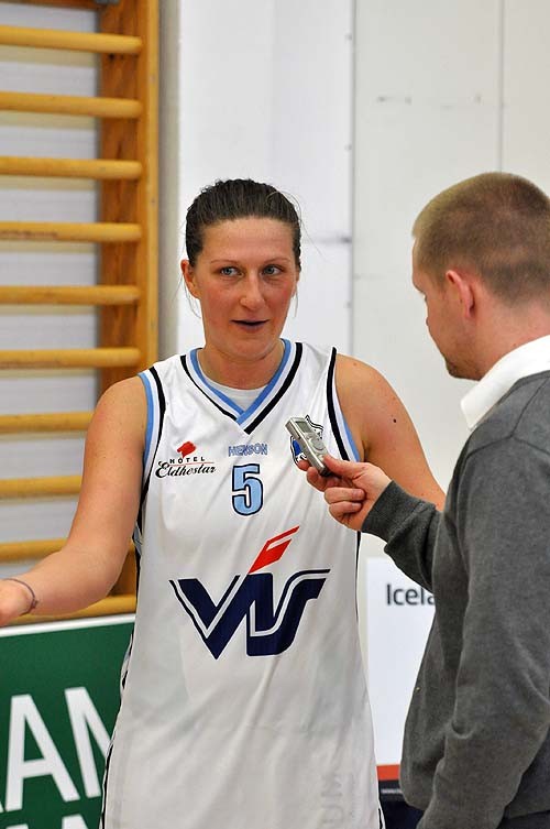Julia Demirer var kát í bragði eftir 81-75 sigur Hamars gegn KR í úrslitum Iceland Express deildar kvenna í dag. Staðan í einvíginu er því 2-2 og oddaleikur á þrijðudag en Julia átti mestan þátt í sigri dagsins enda fór hún gersamlega á kostum með 23 stig og 26 fráköst. Julia er að leika meidd en meiðslin hafa verið að elta hana síðan í rimmunni gegn Keflavík.