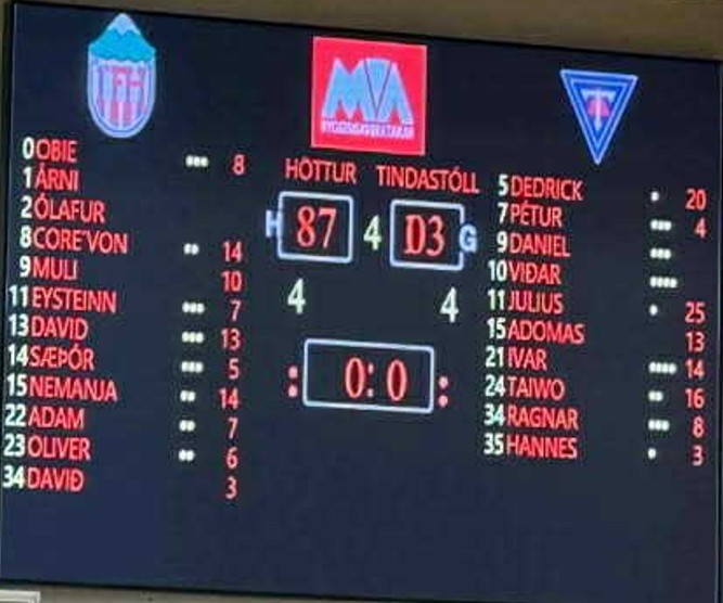 Hér fyrir neðan má sjá stigatöflu leiksins eftir að leik lauk í MVA höllinni.