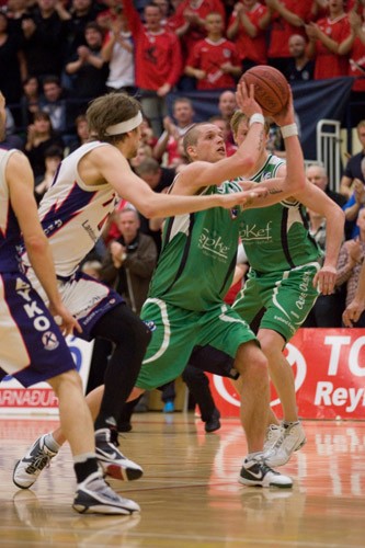 Ljósmynd/ Sölvi Logason: Guðmundur í baráttunni í Toyota-höllinni í kvöld.