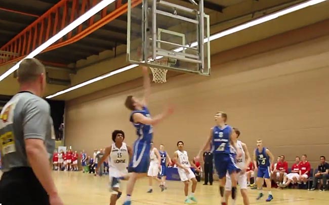 U16 ára karlalið Íslands vann dramatískan sigur á Norðmönnum áðan. Dómarar leiksins dæmdu körfuna gilda og við það urðu Norðmenn afar ósáttir og töldu hana kolólöglega en Ísland fagnaði engu að síður sigri. Athygli vakti að dómarar leiksins studdust ekki við myndbandsupptökuna til að skera úr um gildi körfunnar svo Jörundur Snær er hetja Íslands þetta sinnið. Frábær barátta í þessu 16 ára liði sem oftsinnis var komið út í þröngt horn í leiknum gegn Norðmönnum.