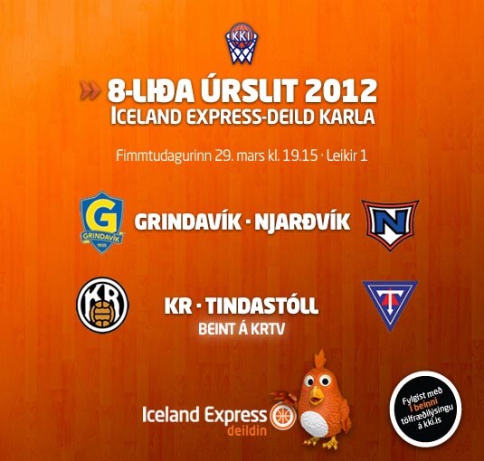 Stóri dagurinn er runninn upp, í kvöld hefst úrslitakeppnin í Iceland Express deild karla þegar tvö einvígi sigla úr höfn. Annars vegar hefst rimma Grindavíkur og Njarðvíkur og hins vegar rimma KR og Tindastóls. Grindavík og KR hafa heimaleikjaréttinn og því er leikið í Röstinni og DHL Höllinni í kvöld og þið þekkið leiktímann, 19:15 var það heillin.