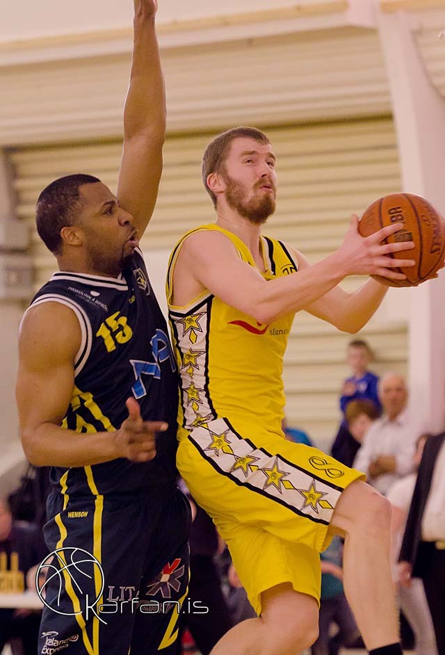 Áskell Jónsson átti glimrandi leik með ÍA gegn Skallagrím í gærkvöldi þegar liðin mættust í sínum öðrum úrslitaleik um laust sæti í efstu deild karla á næstu leiktíð. Áskell skoraði 20 stig fyrir Skagamenn sem jöfnuðu metin í 1-1 og sagði Áskell að viðtalið við Hörð Helga Hreiðarsson leikmann Skallagríms á Karfan.is eftir fyrsta leik liðanna hefði kveikt í sínum mönnum fyrir leik tvö.