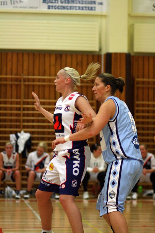 Keflavík sýndu strax á fyrstu mínútu að þær voru svo sannarlega tilbúnar í leikinn og ætluðu sér ekkert annað en sigur.  Staðan eftir 8 mínútna leik var 23-3 og gestirnir vissu varla hvað snéri upp né niður.  Í öðrum leikhluta vöknuðu loks gestirnir til lífsins sóknarlega séð í það minnsta. En Ágúst þjálfari Hamars hélt áfram í svæðisvörn sinni sem var að skila Keflavík auðveldum þriggjastiga skotum sem þær nýttu sér til fulls. Helst má þar nefna Kristi Smith sem var komin með 18 stig í fyrri hálfleik. Staðan í hálfleik var 37-24 heimastúlkur í vil.