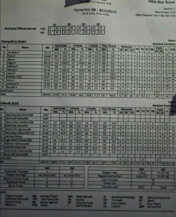 Stigahæst fyrir Keflavík í leiknum var Jasmine Dickey með 33 stig og Thelma Dís Ágústsdóttir bætti við 19 stigum. Fyrir Hamar/Þór var Hana Ivanusa atkvæðamest með 18 stig. Henni næst var Abby Beeman með 15 stig.
