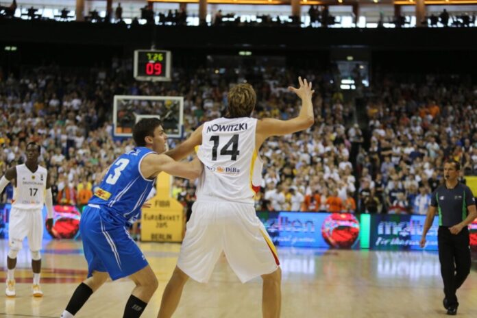Mynd: Hörður með Dirk Nowitski á blokkinni síðastliðið sumar.