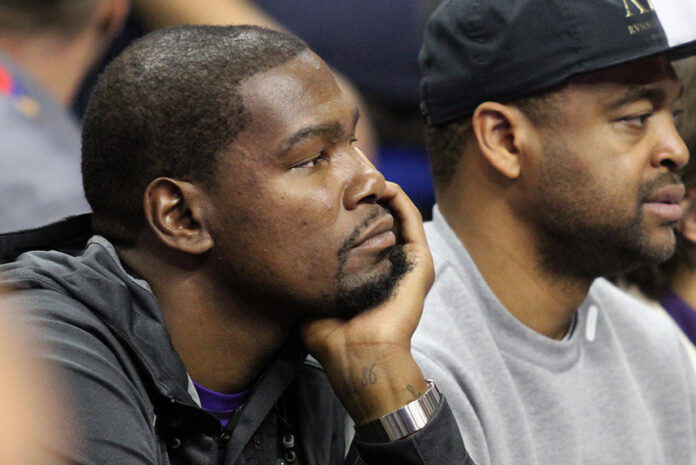 Mynd: Kevin Durant var áhorfandi á leik Þýskalands og Spánar á Eurobasket 2015 (Hörður Tulinius)