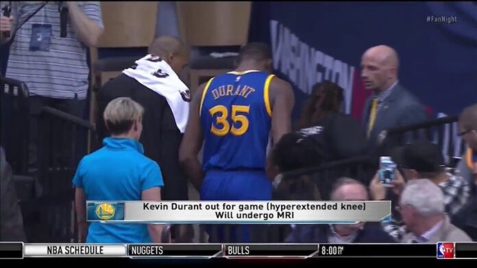 HomeFréttirKevin Durant fór meiddur af velli