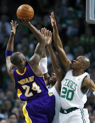 Kobe Bryant sýndi enn einu sinni að hann er hættulegasti leikmaður NBA þegar sigur er í húi á lokasekúndum þegar hann skoraði sigurkörfuna fyrir LA Lakers gegn Boston Celtics í æsispennandi viðureign erkifjendanna. Lakers fengu boltann eftir að Paul Pierce hafði brotið af sér í sókninni og Kobe setti sigurkörfuna þegar rúmar 7 sek voru eftir af leiknum. Ray Allen fékk færi á að snúa taflinu við en lokaskotið hans geigaði.