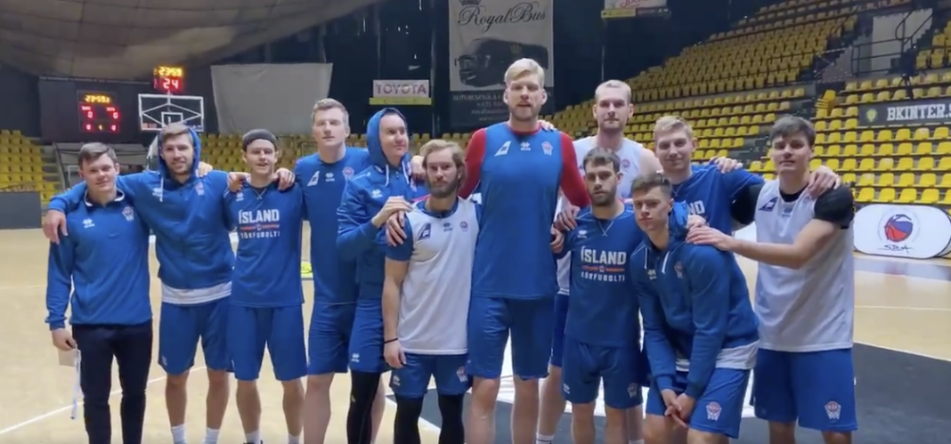 Tveimur tímum seinna, kl. 17:00 mætir kvennalandslið Íslands í fótbolta heimakonum í Slóvakíu í undankeppni Evrópumótsins 2022. Hér fyrir neðan má sjá skemmtilega baráttukveðju sem körfuboltalandsliðið sendir fótboltalandsliðinu.
