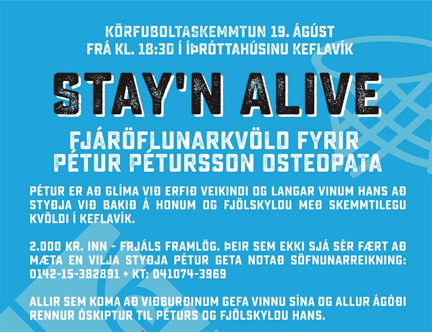 Körfuboltaskemmtun fer fram í Íþróttahúsinu við Sunnubraut í Keflavík þann 19. ágúst næstkomandi en viðburðurinn er fjáröflunarkvöld fyrir Pétur Pétursson osteopata sem nú glímir við erfið veikindi.