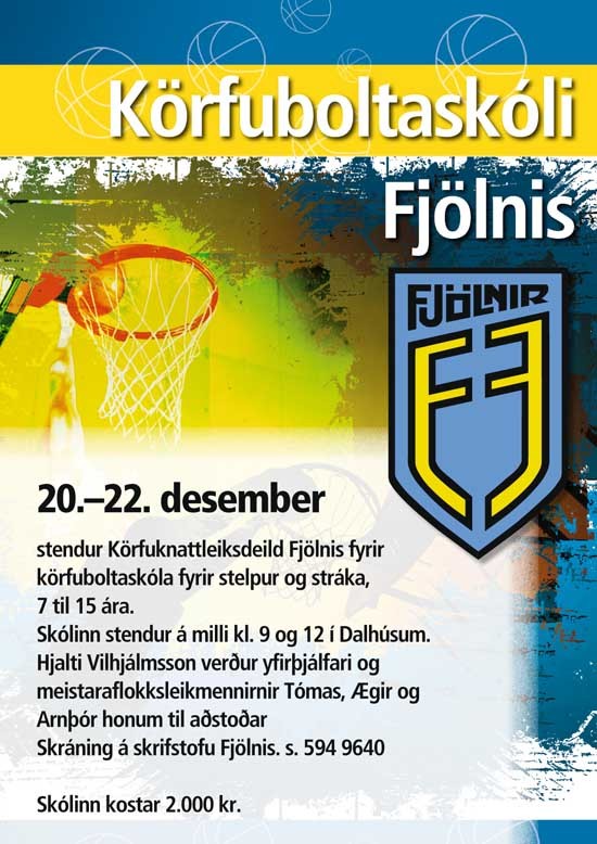 Dagana 20.-22. desember næstkomandi stendur yfir Körfuboltaskóli Fjölnis en skólinn er fyrir stelpur og stráka á aldrinum 7-15 ára. Æft verður í Dalhúsum þar sem Hjalti Vilhjálmsson, leikmaður meistaraflokks Fjölnis, verður yfirþjálfari.