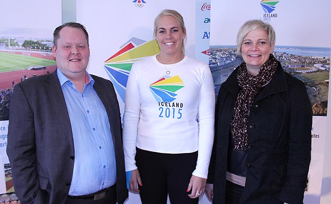 Mynd/ [email protected] – Frá kynningarfundi 2013 fyrir Smáþjóðaleikana. Helena Sverrisdóttir ásamt Hannesi formanni KKÍ og Guðbjörgu varaformanni KKÍ.