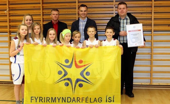Unglingadeildin hafði áður fengið þessa viðurkenningu en nú er það öll deildin sem hana hlýtur. Það voru þau Stefán Jónsson formaður, Hafdís Einarsdóttir og Eiríkur Loftsson sem tóku við viðurkenningunni ásamt fríðum hópi barna sem eflaust eiga eftir að gera garðinn frægan á körfuboltavöllum landsins í framtíðinni.