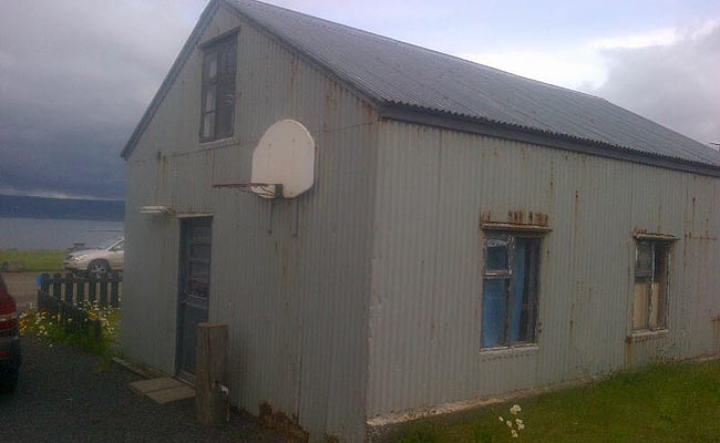 Við þökkum þeim sem hafa verið að senda okkur myndir af körfum eða körfuboltavöllum. Hér koma nokkrar frá sjálfum formanni KKÍ, Hannesi S. Jónssyni sem um helgina lagði land undir fót. Hannes var m.a. á Hólmavík og tók mynd af þessari körfu utan á bárujárnsvegg.