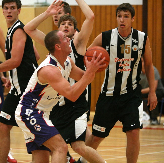 Mynd: Elentínus Margeirsson reynir að finna leið að körfu KR-inga