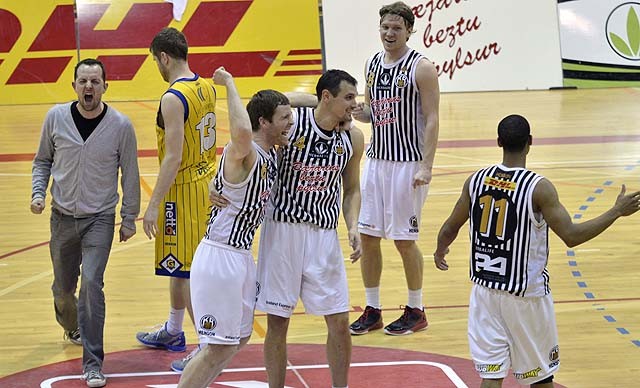 Mynd/ [email protected] – KR-ingar fögnuðu vel í leiksloka og þjálfarinn Hrafn Kristjánsson lét þar ekki sitt eftir liggja.