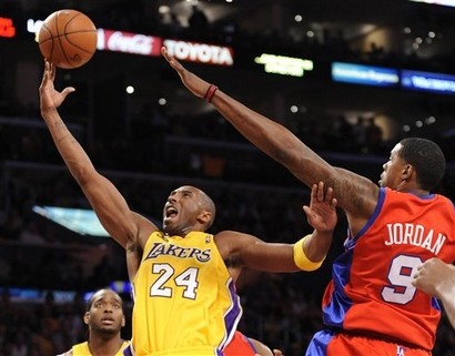 Eftir að hafa fengið afhentan meistarahringinn og horft á 15. meistarafánann hífðan upp í rjáfur í Staples Center sneru Kobe Bryant og Lakers sér að því að sækja næsta titil og unnu Clippers, 99-92.