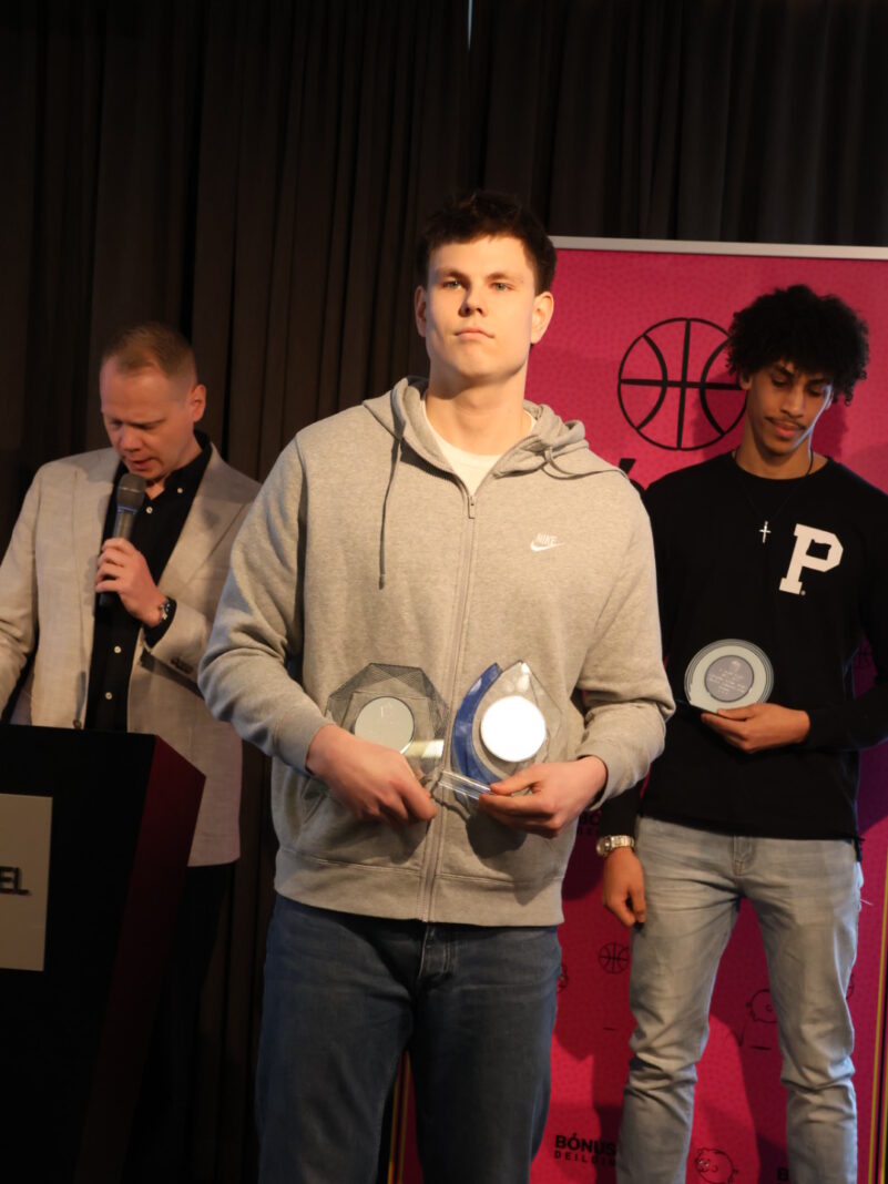 Karfan spjallaði við besta leikmann fyrstu deildar karla Friðrik Anton Jónsson leikmann KR/KV eftir að hann var sæmdur verðlaununum. Lið hans KV rétt missti af úrslitakeppni fyrstu deildarinnar, en átti samt sem áður fínt tímabil sem eina lið deildarinnar sem lék án erlends atvinnumanns. Friðrik var oftar en ekki lykilleikmaður KV í vetur, en hann skilaði 22 stigum, 10 fráköstum og 3 stoðsendingum að meðaltali í leik á tímabilinu.