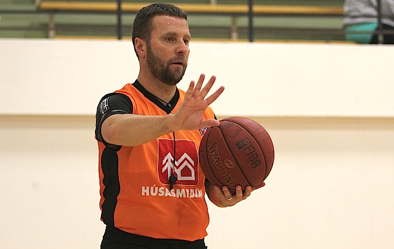 Mynd/ Sunnlenska.is – Leifur í Frystikistunni í gær hvar hann dæmdi viðureign Hamars og ÍA.