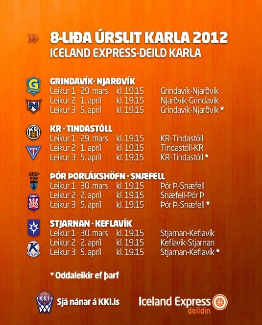 KKÍ gaf í dag út leikdagana í úrslitakeppni Iceland Express deild karla. Lokaumferðin fór fram í gærkvöldi og þá fékkst endanlega staðfest hvernig úrslitakeppnin í ár yrði skipuð.