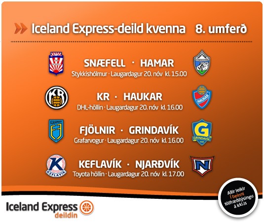 Heil umferð fer fram í Iceland Express deild kvenna í dag en það er áttunda umferðin og mætast þar m.s. Keflavík og Njarðvík í Toyota-höllinni en á mánudag mætast þessi sömu lið í karlaflokki svo í mörg horn verður að líta í Toyota-höllinni næstu daga.