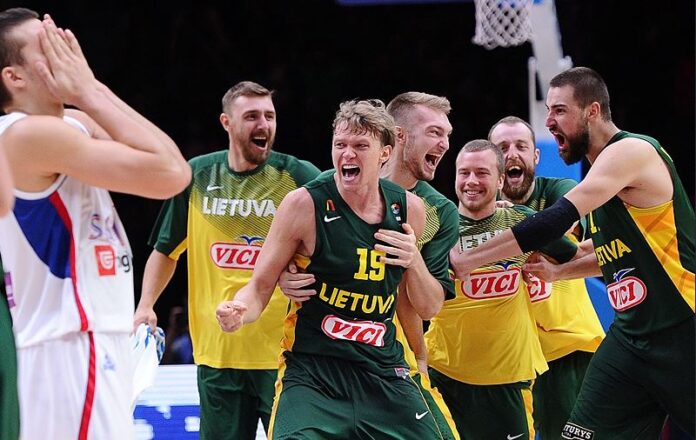 Litháar mæta því Spánverjum í úrslitum á sunnudaginn en Serbar spila um þriðja sætið við Frakka sama dag.