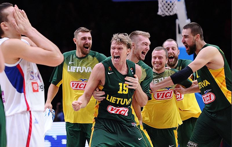 Litháar stöðvuðu Serbnesku vélina í undanúrslitum Eurobasket 2015 í Frakklandi í dag. Magnaður varnarleikur Litháa hélt Serbum í aðeins 64 stigum og með 33% skotnýtingu. Fram að þessu höfðu Serbar ekki tapað einum leik. Lokatölur 67-64.