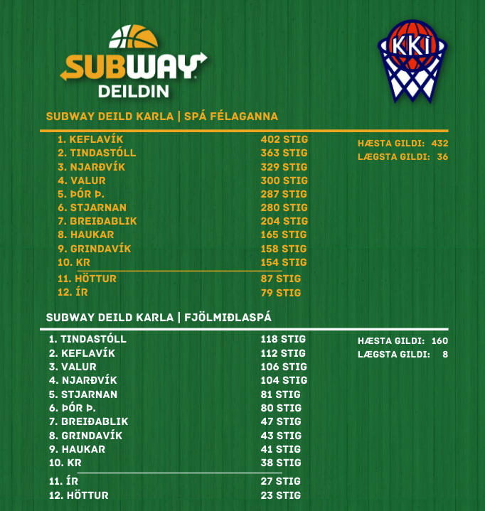 Hérna má sjá spárnar fyrir Subway deild karla 2022-23